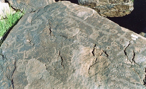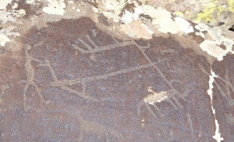 Motifs: The presence of motifs of carts and wagons at Ughtasar suggests that some at least of the petroglyphs were not carved before the early 3rd millennium BC when wheeled transport, as evidenced by clay models, first appears in the archaeological record of Armenia, for example at the Kura-Araxes village settlement of Harich (Kushnareva, 1997). Yoked bulls and one (so far unique) ploughing scene at Ughtasar may be earlier - Kushnareva suggests that the ox-drawn plough first appeared in Armenia between the second half of the 4th millennium and the middle of the 3rd millennium.