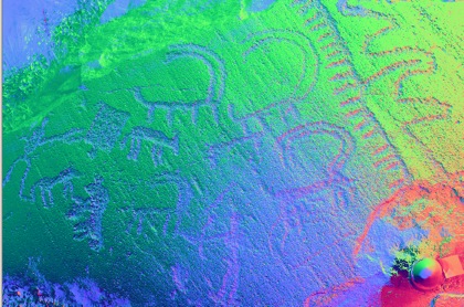 onto which a digital light-source can be shone from any direction so as to reveal subtle surface topography and textures which may be almost invisible under normal lighting conditions (Duffy, 2013). The method is unsurpassed so far for capturing fine surface detail. The technique provides a low-cost means of acquiring the images for subsequent processing even under the demanding conditions encountered during fieldwork in 2010 and 2011. The best results are obtained by photographing after sunset, which presents a number of challenges at Ughtasar, including precarious rock-streams, low temperatures, strong winds and the possibility of prowling bears or wolves. However a number of successful models have been created and it is planned to increase the use of the technique in future fieldwork seasons.
